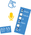 "Worträtsel". Hier werden eine oder mehrere Fragen gestellt, die auf deine Antwort warten. Bei den Worträtseln gibt es keine Möglichkeit, die Stoppuhr anzuhalten. Wenn du etwas nicht weißt, kannst du jemanden fragen, ein Lexikon aufschlagen (z.B. auch Duden Online) oder die Antwort über Labarama oder Google erkunden. Du musst dich konzentrieren, in Ruhe gut nachdenken oder Hilfe holen, damit dir viele "Zeitpunkte" bleiben.