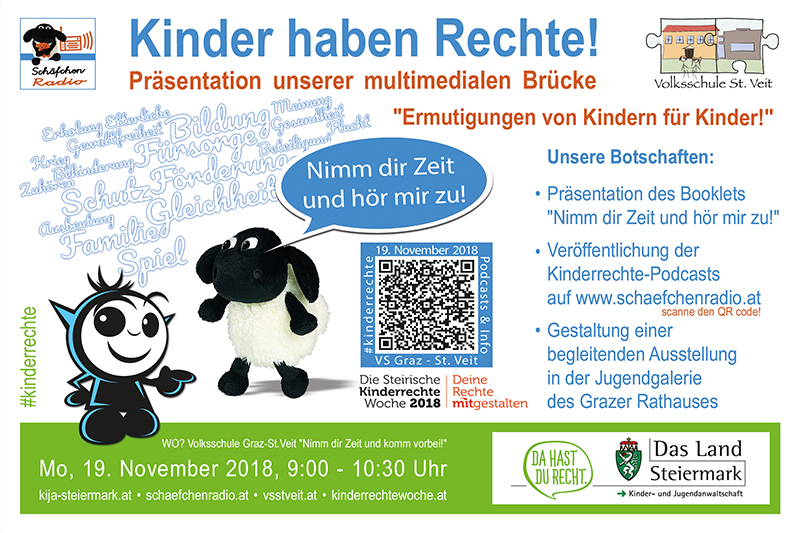 Kinder brauchen Schutz und noch Vieles mehr. Die Ermutigungen unserer Kinderrechte-ExpertInnen der Volksschule Graz-St.Veit schicken wir dir via Internet als Podcast-Ohrenpost!