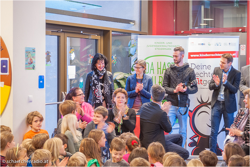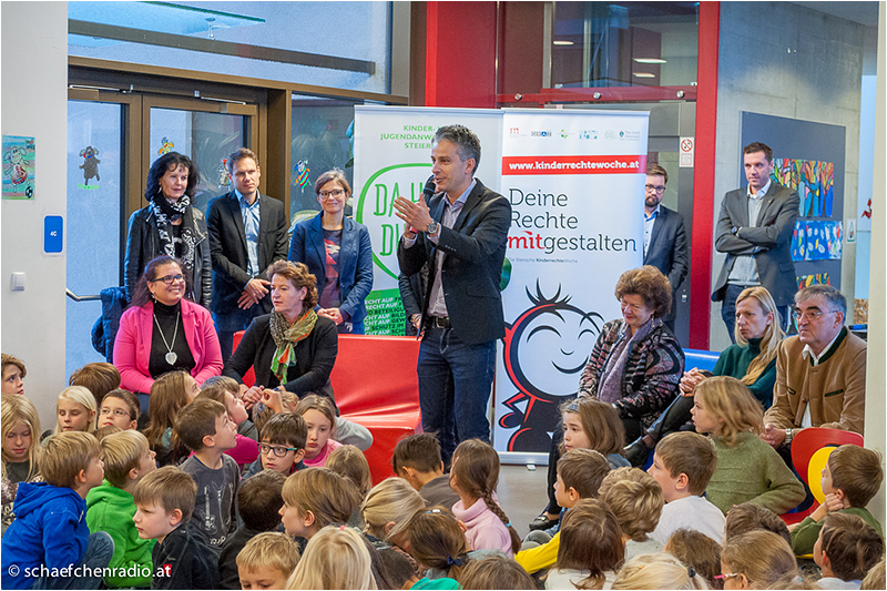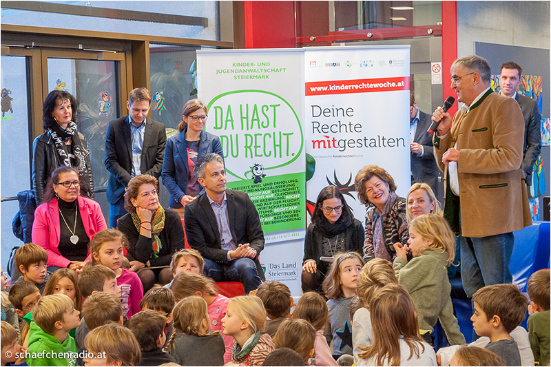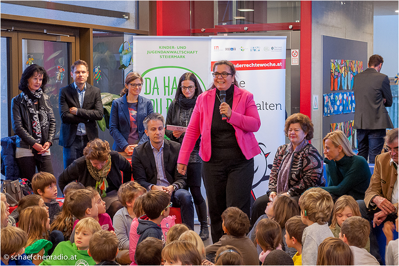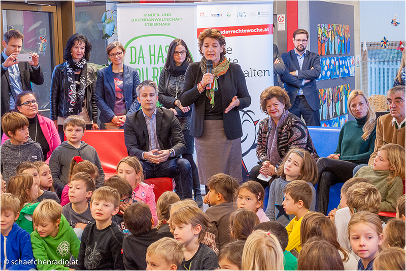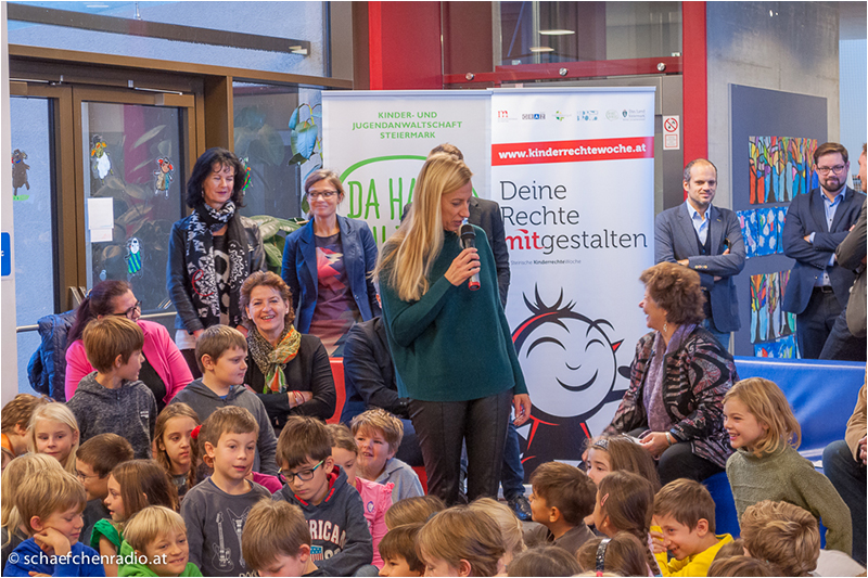 Mo, 19.11.2018 - Die Steirische Kinderrechtewoche 2018 wurde auch bei uns in der Schule gefeiert. 255 Kinder waren mit Lehrer*innen und besonderen Gästen dabei! Wer unser Besuch war? Hier zuhören und gleichzeitig → Bilder anschauen. So geht Miteinander-Gesellschaft!