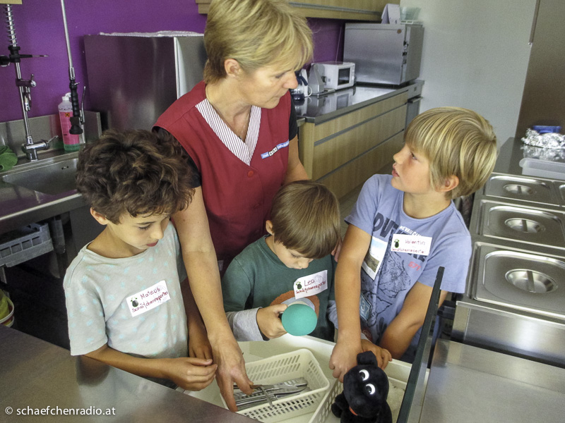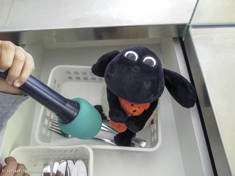 Ein Schäfchenradiobeitrag soll aber nicht unendlich lang sein, damit das Zuhören interessant und abwechslungsreich ist. Deshalb kommt aus den vielen Fragen und Antworten und aus der großen Küchen-Geräusche-Sammlung auch nicht alles ins Schäfchenradio. Aus den Radioworkshops wissen die Reporter schon, dass die Aufnahme, das „Rohmaterial“, bearbeitet wird. Das hat auch den Vorteil, dass man Versprecher, Wiederholungen und störende Geräusche herausschneiden kann.