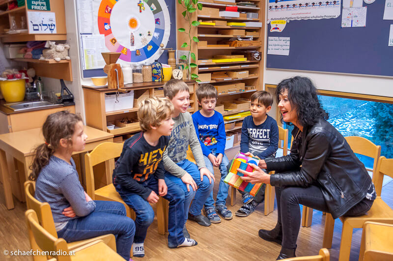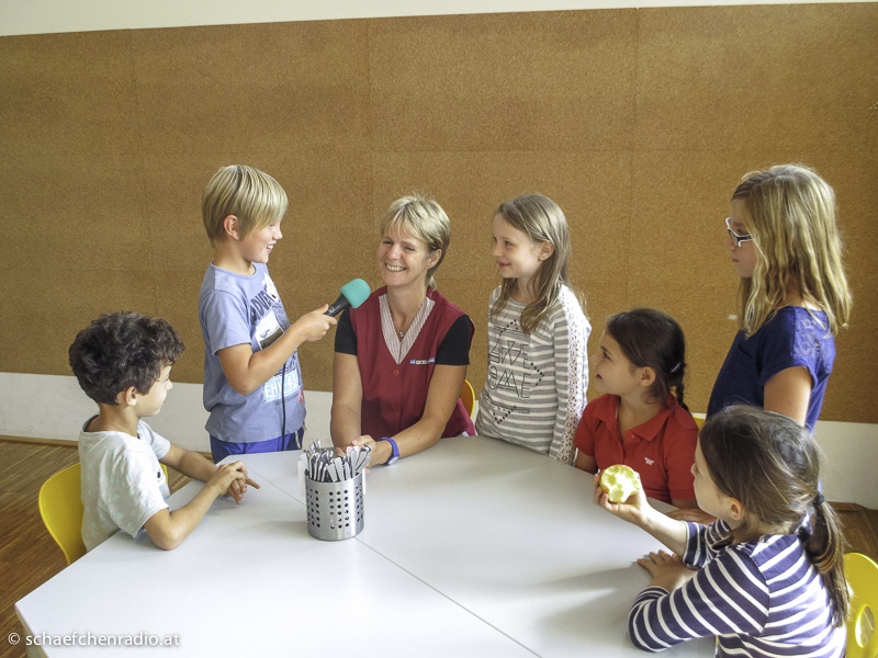 Diesmal erzählt die Leiterin der FreizeitbetreuerInnen von ihrer Arbeit für die Kinder, die zur Nachmittagsbetreuung gehen. Judith und ihr Team Marie, Philipp und Gernot sind Planungs-Meister der Freizeit der Kinder im ganzen Schulhaus, Hof und Küche.