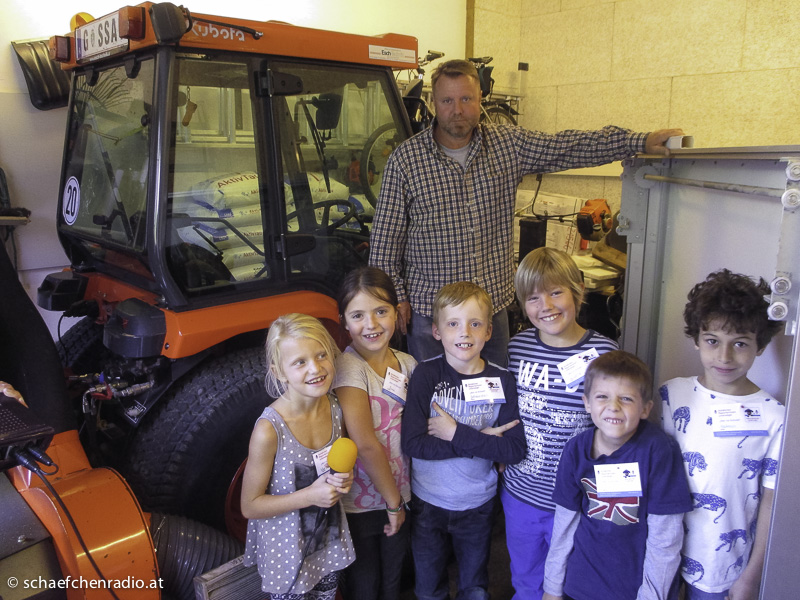Nach dem Rundgang durch das Schulhaus ist das Mikrofon gut gefüttert. Das Reporterteam muss jetzt nochmals die Ohren spitzen, um herauszufinden, ob die Aufnahme auch wirklich gelungen ist. Klingt der Traktor wie ein Traktor, oder war das Mikrofon zu nahe dran? Sind die Kinderstimmen gleich gut zu hören wie die kräftige Stimme von Herrn Meierhofer?