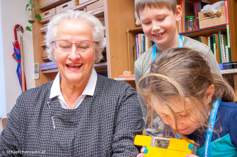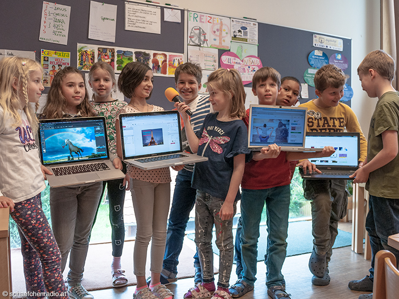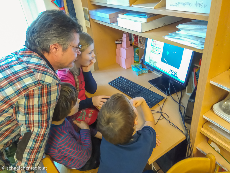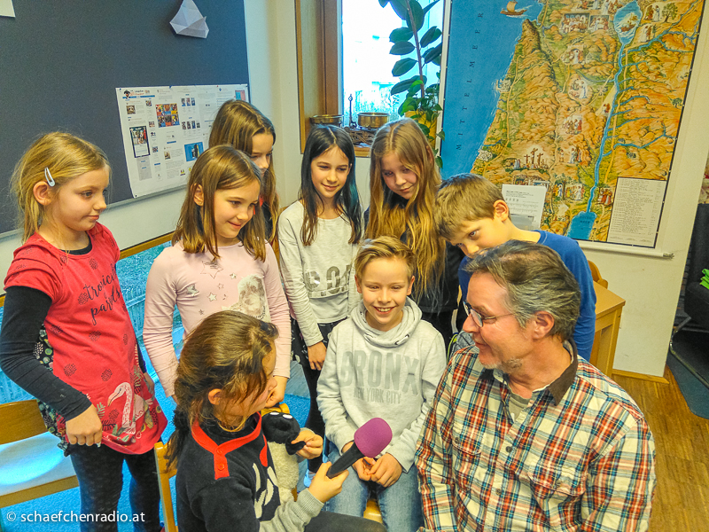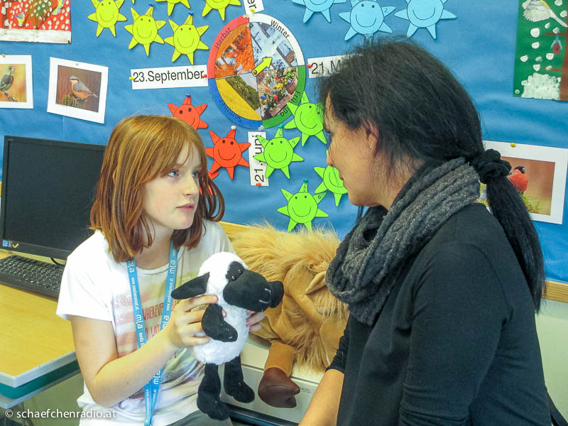 Wo ist denn dieser Schäfchenreporterbeitrag überall zu hören? Nur in der Schule? In ganz Österreich? Oder vielleicht auf der ganzen Welt? Ja, genau: Im Internet können euch alle, die sich für euch, eure Schäfchen und unsere Schule interessieren, mit den Ohren besuchen. Ihr könnt also euren Verwandten und Freunden – wo immer sie wohnen – unsere Schäfchenradioadresse www.schaefchenradio.at schicken, damit auch sie euch durch die Schule begleiten können.