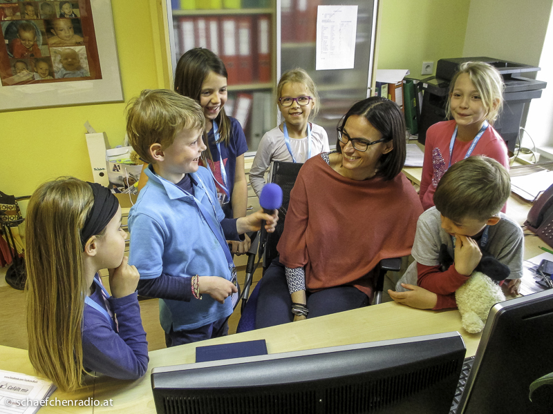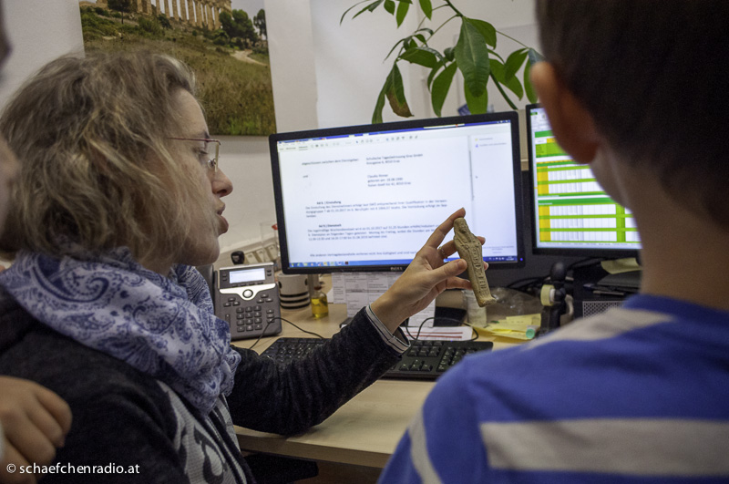 Doris Rudlof-Garreis leitet das Interview, gibt den SchäfchenreporterInnen wertvolle Tipps zur Radioarbeit und bereitet nach der Aufnahme den Hörbeitrag zur Veröffentlichung vor.