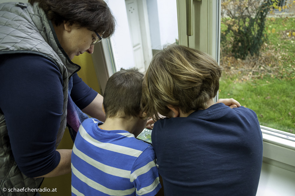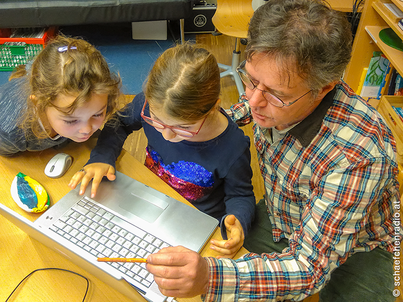 Web Entwickler Didier Hampl hat diesmal sogar zwei Aufgaben: Er fotografiert die tollen Fotos und verarbeitet den fertigen Hörbeitrag von Doris Rudlof-Garreis samt allen Texten zu einem Gesamtwerk. Nach einer abschließenden Besprechung mit Gerlinde Praher lädt er den Beitrag dann auf den Server von www.schaefchenradio.at hoch, damit ihr ihn online sehen und hören könnt!