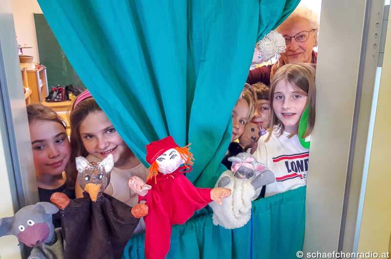 Applaus für das Puppentheater! In der Nachmittagsrunde mit Elfriede Hofer wird auch Theater gespielt - und zwar mit selbstgebauten Handpuppen.